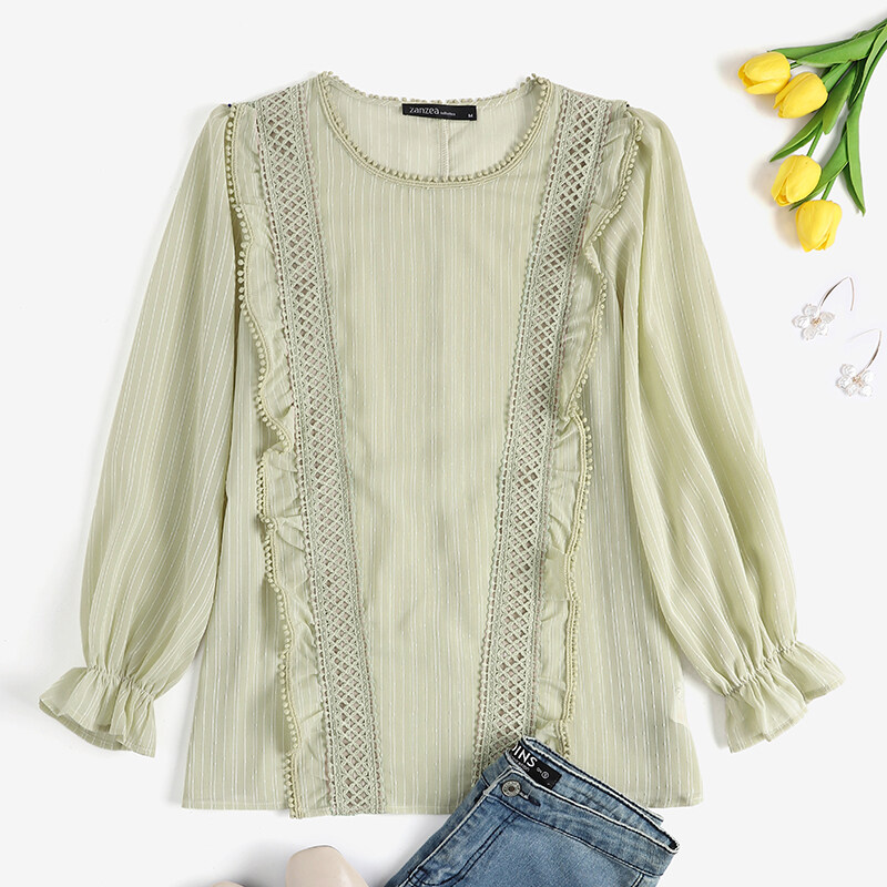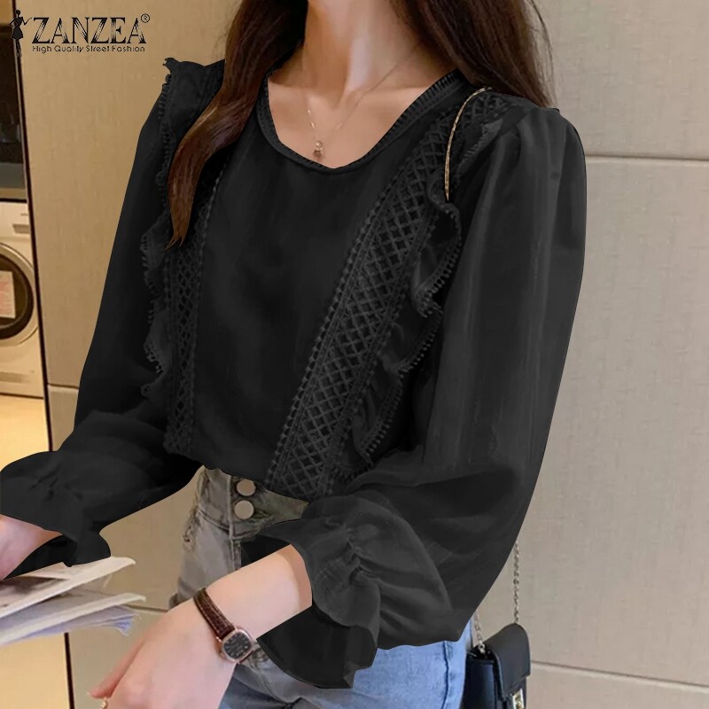 [Clearance Sale]ZANZEA Clearance Sale Womens Puff Long Sleeve Ruffles Shirt Office Cargo Loose Tops Blouse CLE