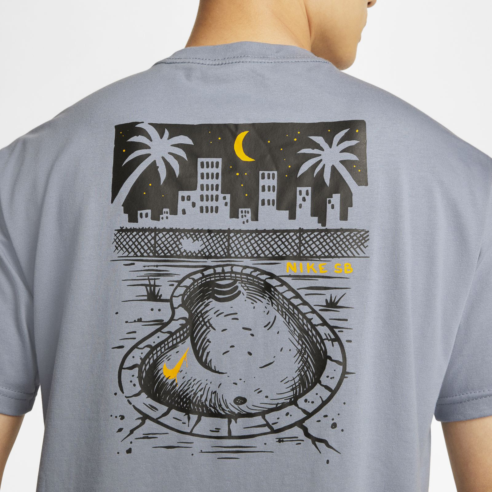 Made with soft cotton in a roomy fit for casual comfort, this Nike SB T-Shirt features a graphic celebrating midnight pool seshes.