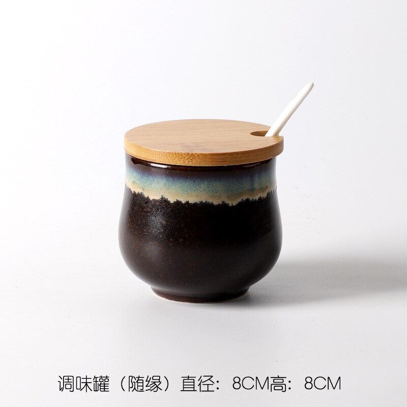 Creative Japanese-Style Ceramic Seasoning Jar Set Restaurant With Lid Spoon Salt Pepper MSG Jar Home Kitchen Seasoning Bottle